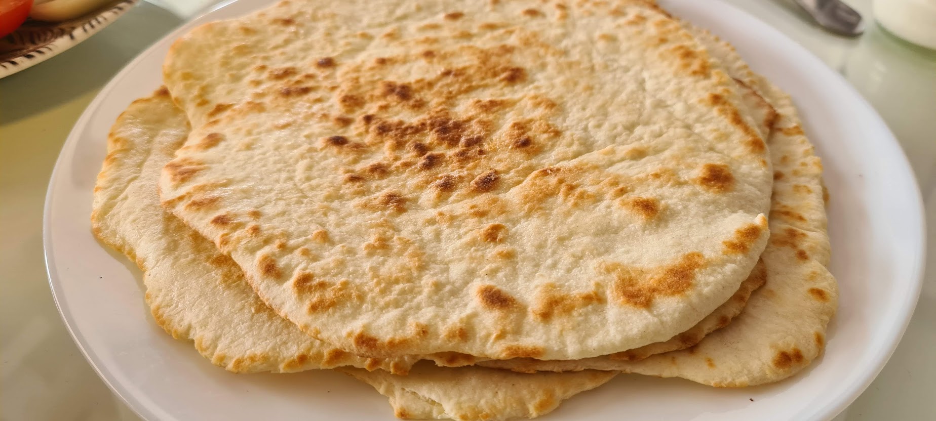 For the potatoes, you can also use frozen potatoes, I used fresh potatoes, 4 potatoes were enough for me, peeled, chopped and I fried them. I fried the potatoes at the same time as I was baking the flat bread, and the meat was roasting in the oven.